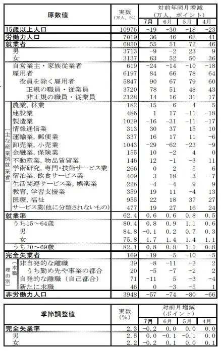 出典:総務省統計局「労働力調査結果」(2025年7月分)より引用